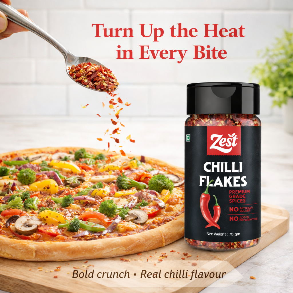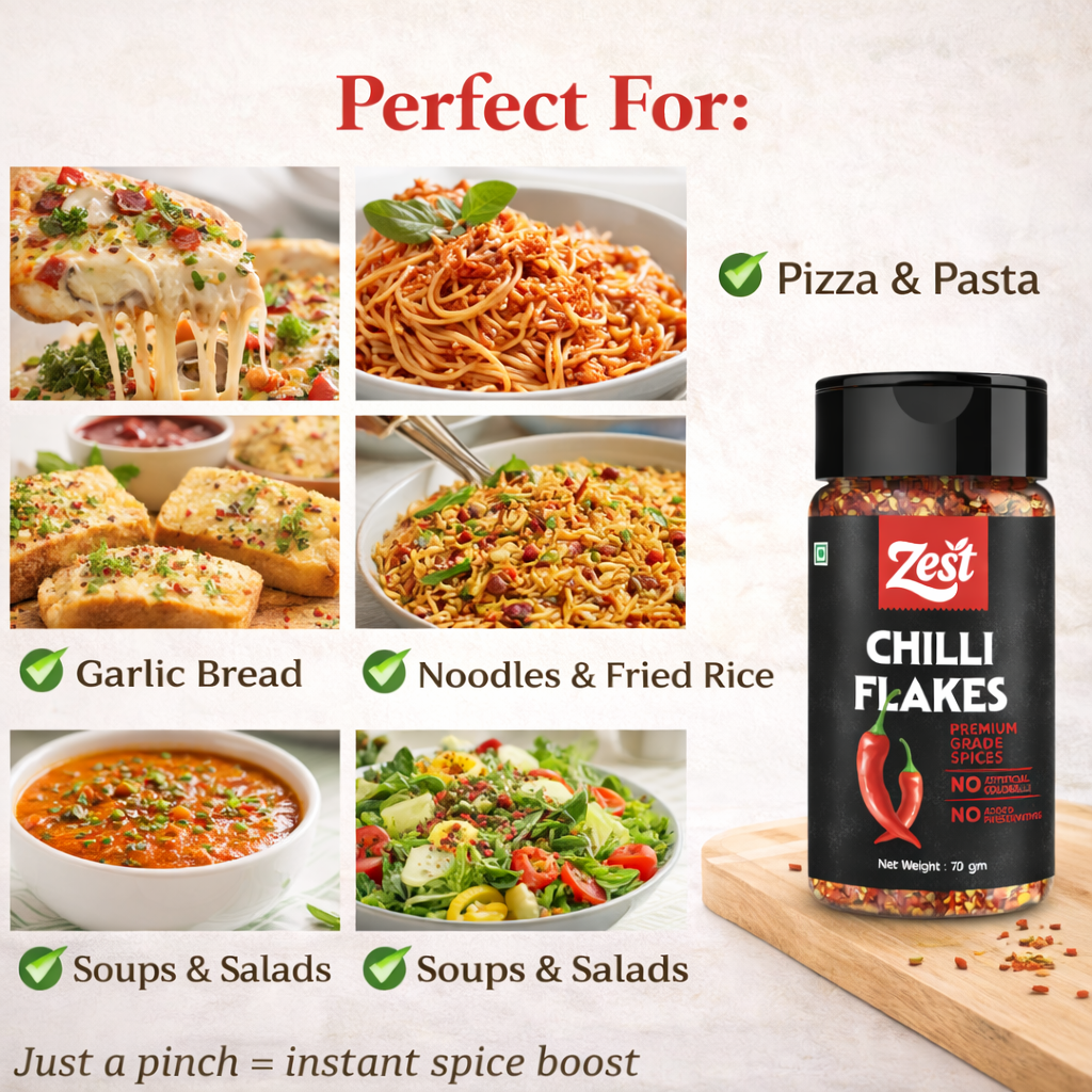 Premium Red Chilli Flakes | Bold Heat & Vibrant Colour | Zest Exotic Range | 70gm